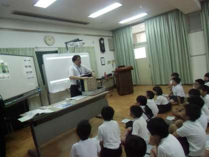 税務署の方を招いて、6年生は「税」についての学習をしました。ワークシートなどを用いてわかりやすく教えていただき、子どもたちも「税」について知り得たことが多かったと思います。授業後子どもたちに話を聞くと、「税金がなかったら、生活に影響すると感じた。」と授業で感じたことを答えてくれました。授業の最後には恒例の?「1億円の重さ」を感じるコーナーを設けていただき、子どもたちみんな1億円(もちろんレプリカ)を持ち上げて、その重みをしっかり感じていました。