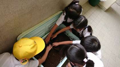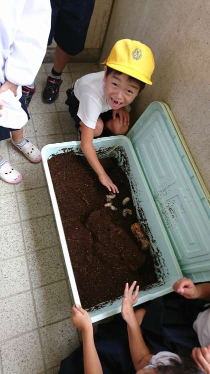 苗代小学校では、管理作業員さんからカブトムシの幼虫をいただき、育てています。春先は数匹だったのが、今年の夏を終え数えてみると、な・な・なんど30匹近くに増えていました。掲示板で子どもたちに呼びかけたところ、何人か家から虫かごを持ってきて「カブトムシを育てたいです」ともらいにきました。生き物を育てることは、命を大切にしようとする気持ちを育てることにつながります。多くの子どもたちに、体験してほしいです。