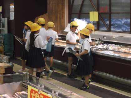 3年生は社会科の「店で働く人と仕事」という単元の調べ学習として、文の里商店街、ビス昭南へ行きました。店で働く人々が、たくさんのお客さんにきてもらうためにどのような工夫や努力をしているか、グループに分かれて調べました。お店の人に聞き取りをしたり、資料として写真をとったりしました。調べたことを新聞で表すそうです。