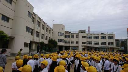 久しぶりの全校朝会。2学期に入って、3連休の週が続いたため、月曜日の朝会をなかなか行うことができませんでした。以前全校朝会を行ったときはまだ夏の日差しを感じたのですが、もうすっかり秋を感じるようになりました。