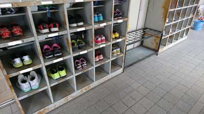 また、靴箱のくつをいつもきちんと揃えている学級を紹介し、整理整とんの大切さも話されていました。校長先生の話を受けて、各学級でも指導していただいたようで靴箱の靴がいつも以上にきれいに揃えられていました。
