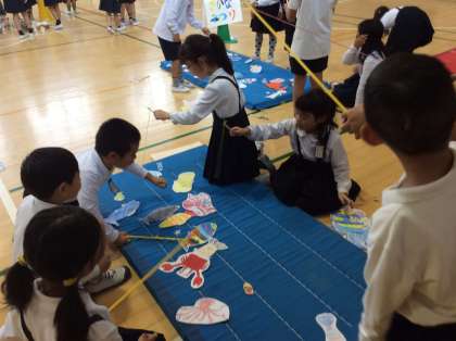 2年生は生活科で「うごく うごく わたしのおもちゃ」を学習しました。このまえの土曜授業の時に、おうちの方にお手伝いしてもらいながら作ったおもちゃで、おもちゃランドを開き、1年生を招待して一緒に遊びました。2年生は、1年生と楽しく遊ぶためのルールを考えたり、活動をスムーズに進めるための役割を決めたりして取り組みました。1年生のみんなはとても喜んでいました。
