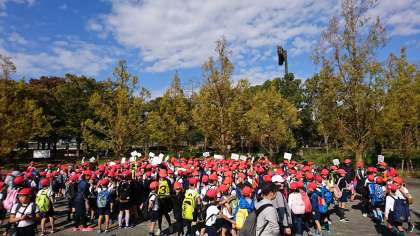 たてわり遠足には、絶好の天気です!全学年長居公園に着きました。今からたてわりラリースタートです。