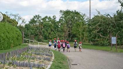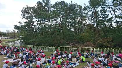 ポイントを回り終えたグループはゴールへ向かって一直線!お弁当タイムです。たてわりのグループで集まって一緒に食べました。そのあとは、学年ごとに公園で活動して、学校へ帰りました。