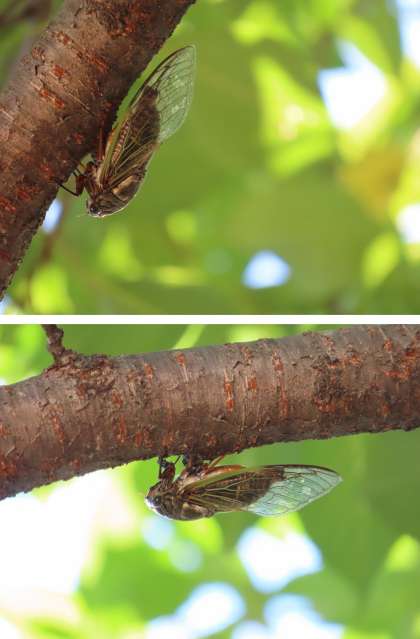 「いきいき」に参加している子が、鳴いているセミを見つけてくれました。
