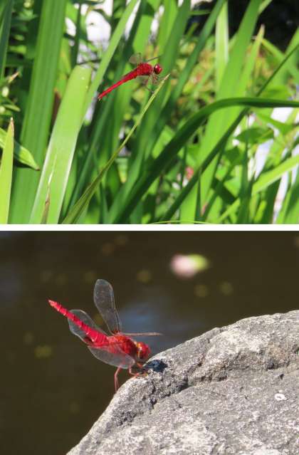 池の中では、メダカや小さなエビが涼しそうに泳いでいます。