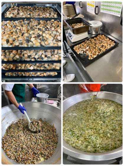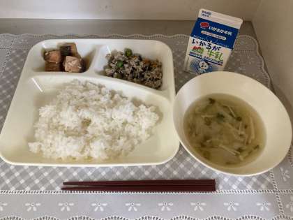 今日の給食には、さけのしょうゆだれかけが登場しました。
