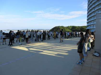 代表の児童のあいさつのあと、みんなで体操をしました。