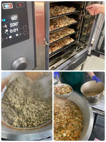 そぼろは、ひき肉や魚、卵などをパラパラに炒って作ります。具材を細かくほぐしたものを「おぼろ」と呼び、それより粒が荒い物を「粗おぼろ」と呼ぶようになり「そぼろ」となったともいわれています。