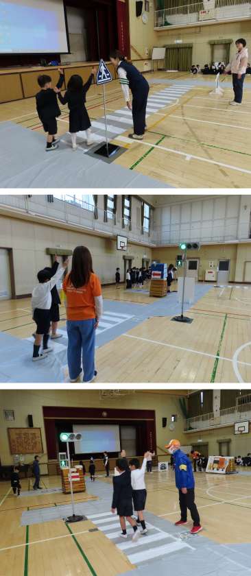 クイズをしたり、実際に講堂の中に作った道路を歩いたりしながら確認していきました。