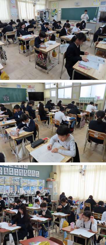 今日は算数と理科、そして高学年は英語も実施されます。