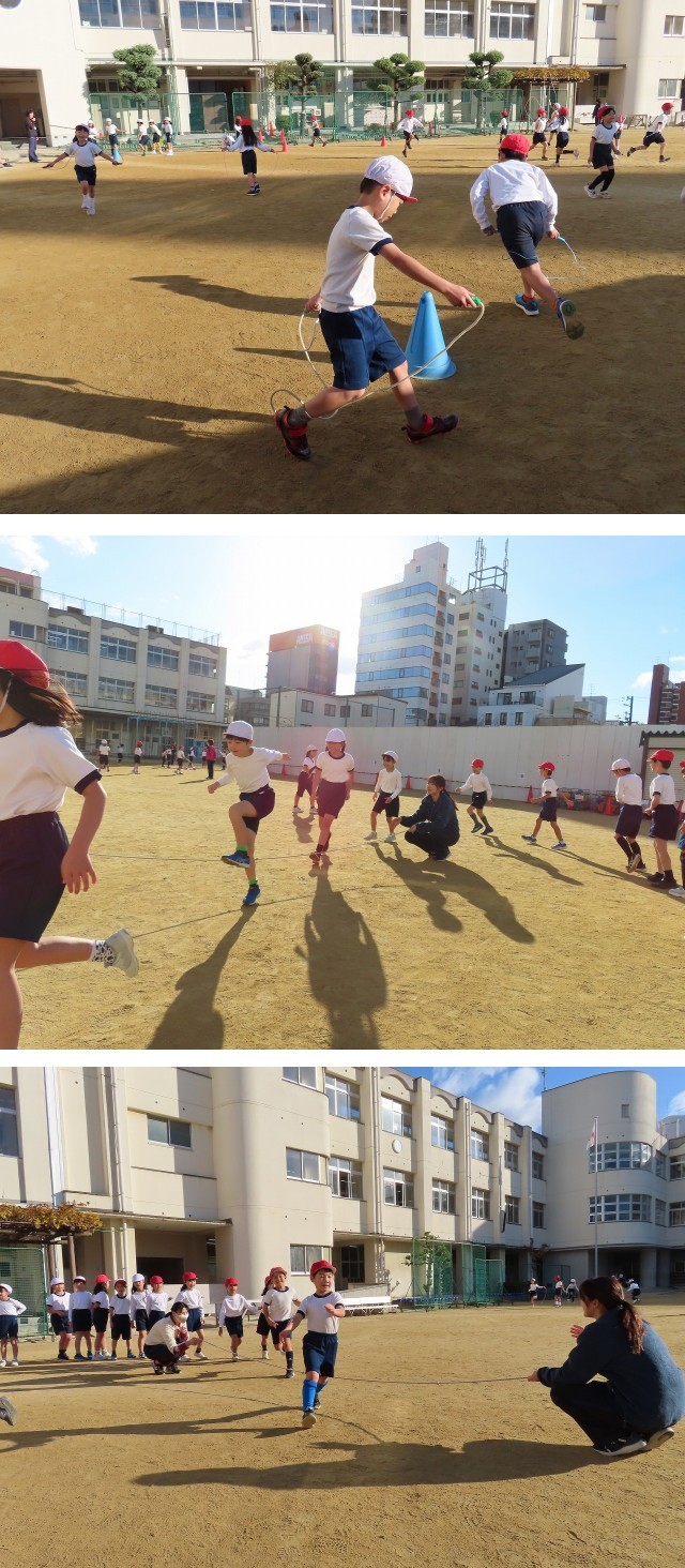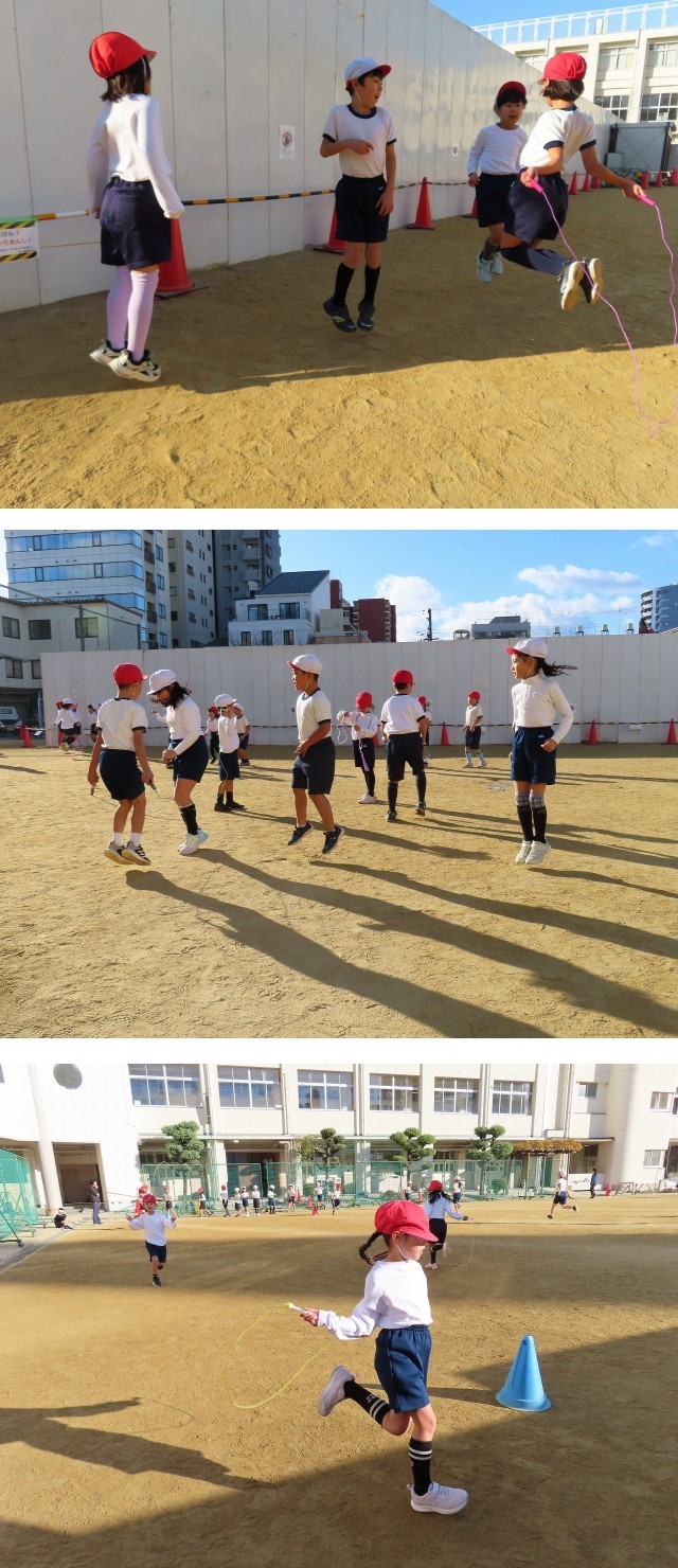 2年生の子どもたちが、この寒さを吹き飛ばすかのように頑張って「なわとび」をしていました。