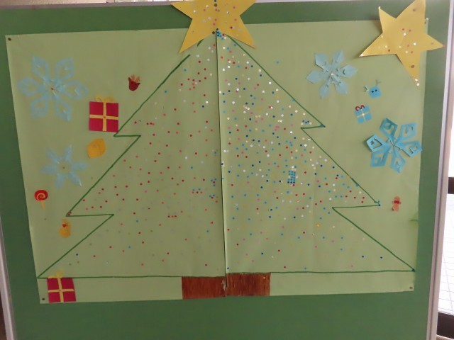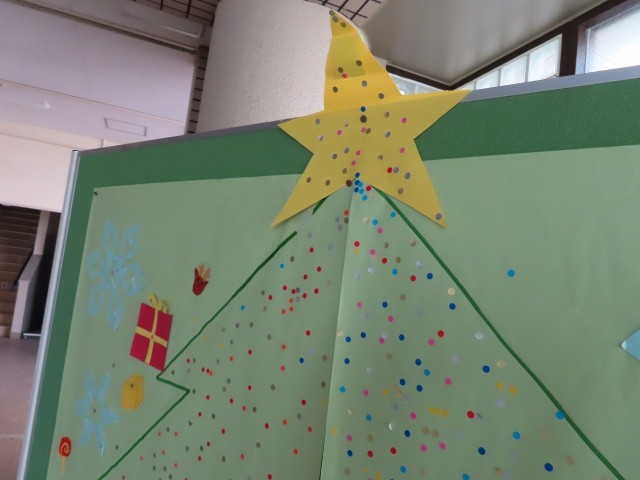 2か所に置いていたツリーを合わせて、講堂前に掲示しました。