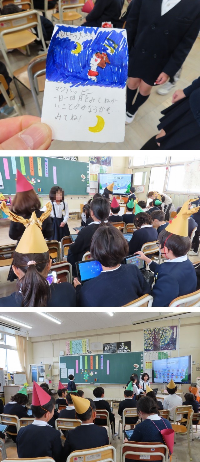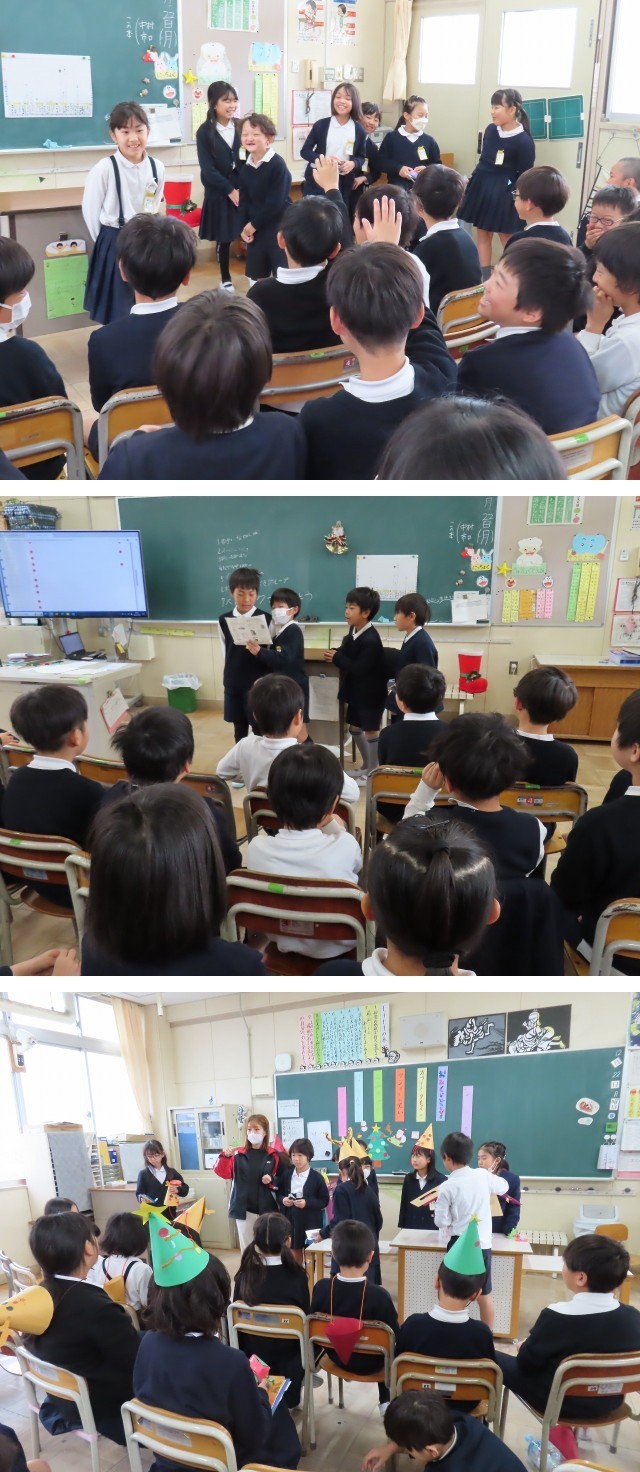 教室をのぞいてみると、今日はどのクラスも、大掃除をしたり、クラスで考えたお楽しみ会やクリスマス会をしていました。