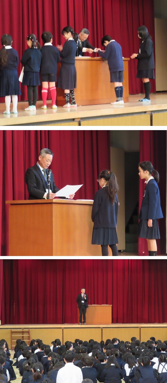 まず初めに、学校に届いていた賞状の紹介をしました。