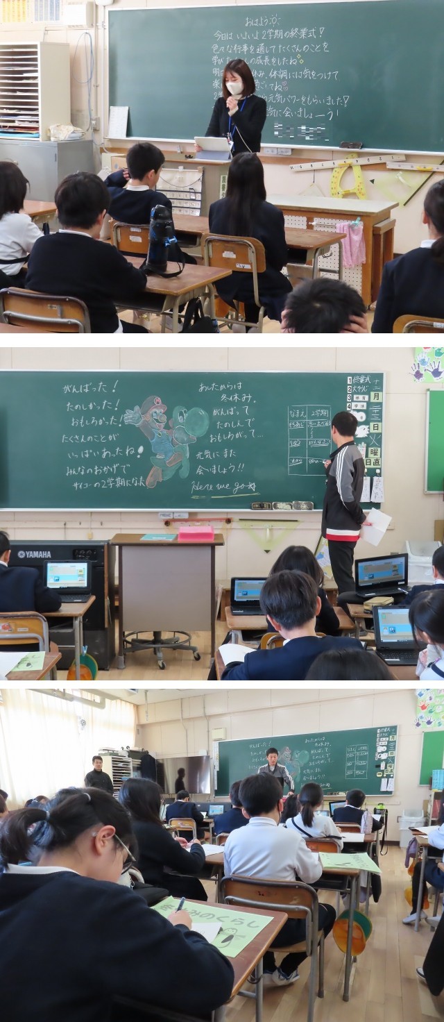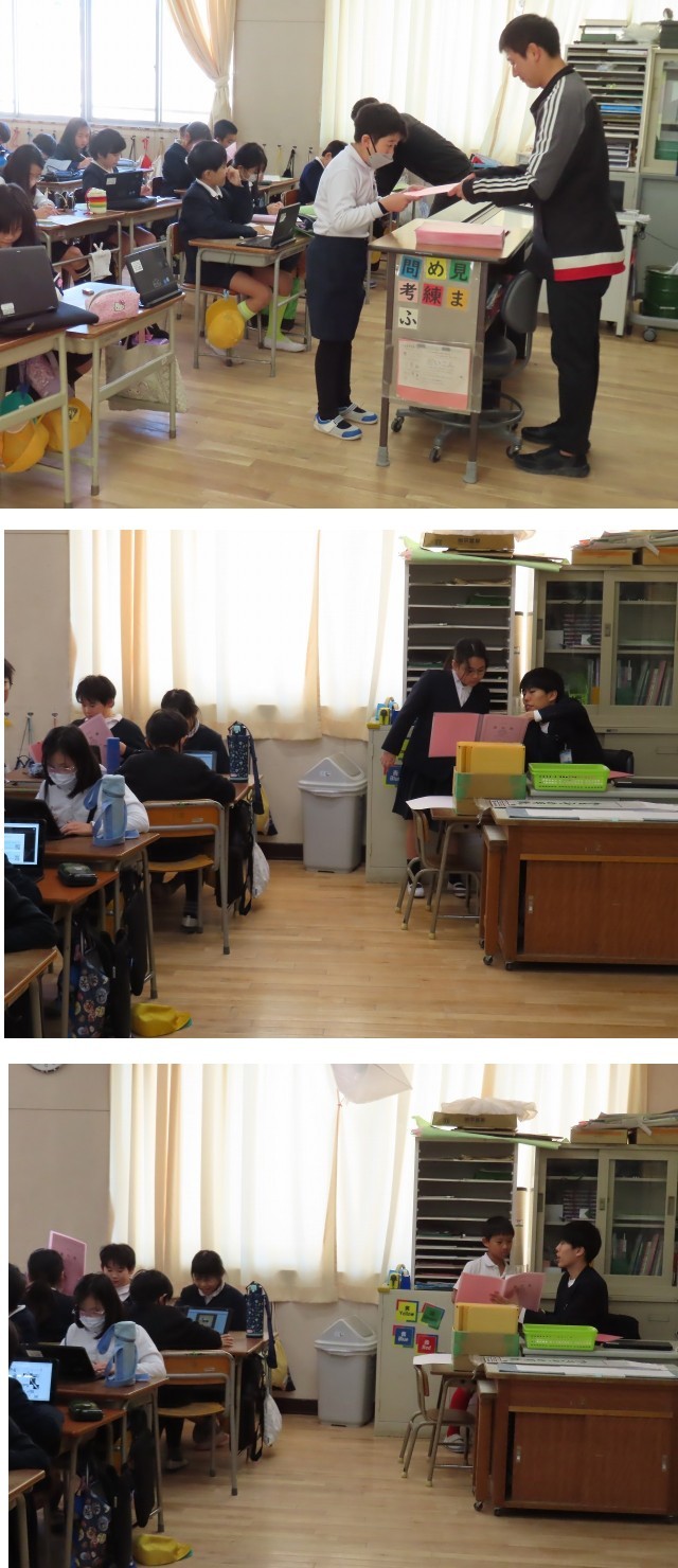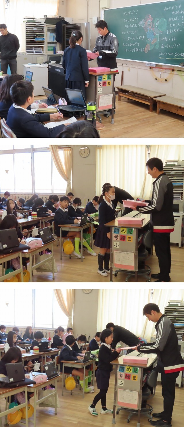 通知表を渡しているクラスもあれば、これから「大そうじ」を始めようとするクラスもありました。