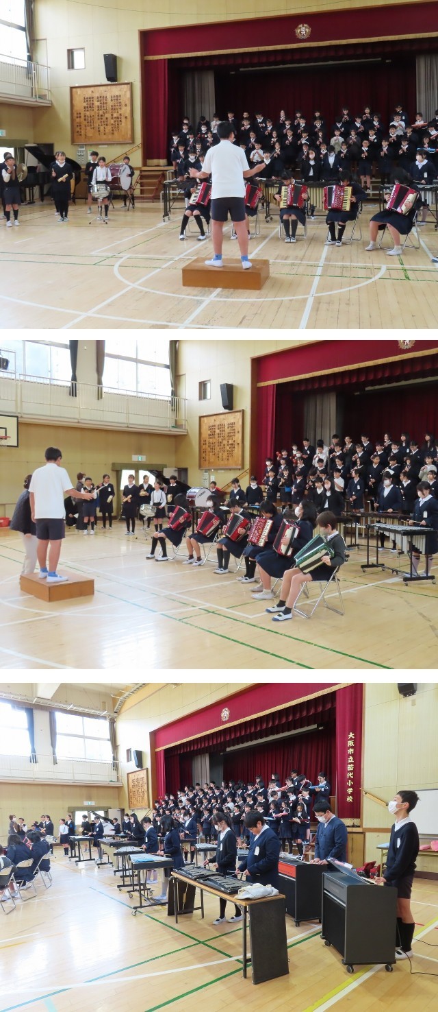 6年生が講堂で、合唱と合奏の練習をしていました。