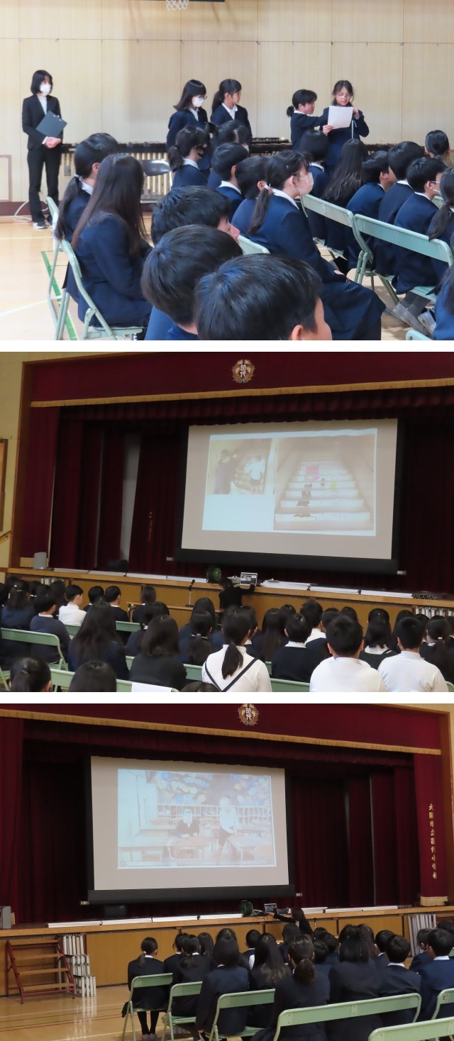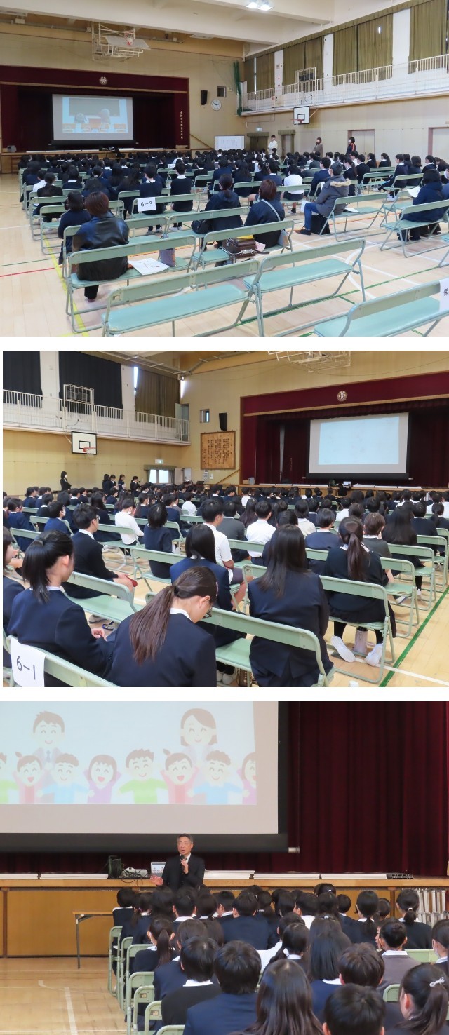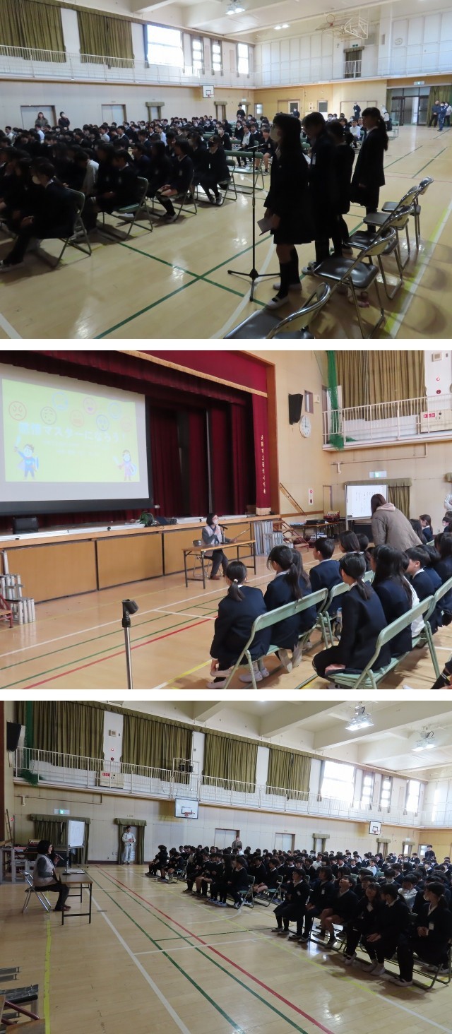 今日の6時間目、講堂で「学校保健委員会」を開きました。