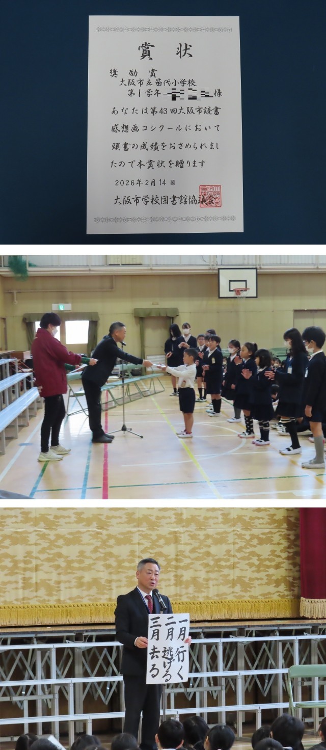 贈呈が終わったあとは、読書感想画コンクールで、奨励賞をいただいた12名の子どもたちに賞状を渡しました。