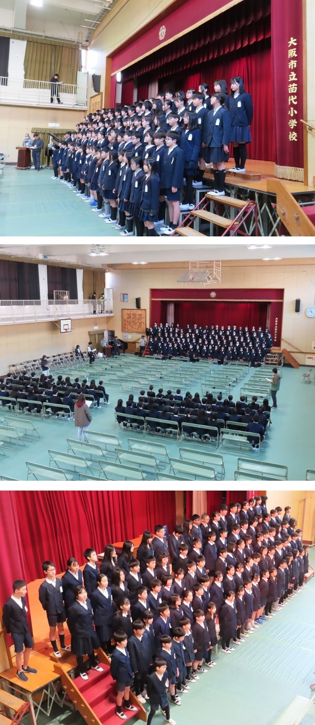 今日は、5年生と6年生が合同で、卒業式の「別れの言葉」の練習をしました。