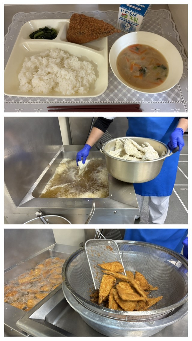 今日の給食では、いわしフライが出ました。