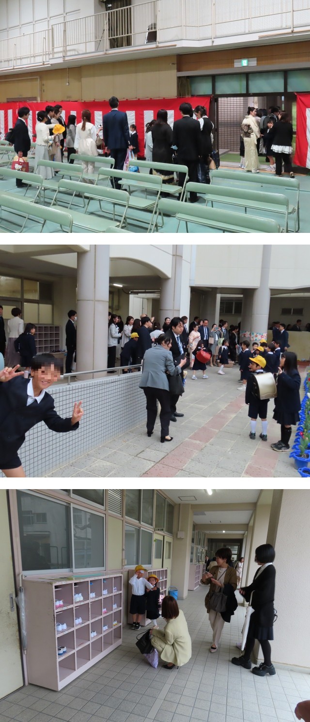 運動場が工事中のため、校庭の桜の前で写真を撮ることはできませんでしたが、式場内や教室の前などで写真を撮っているご家族の方もいらっしゃいました。