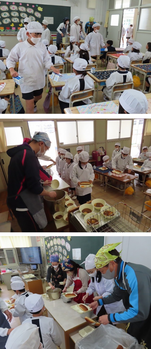 給食を運ぶのは、6年生が手伝ってくれました。