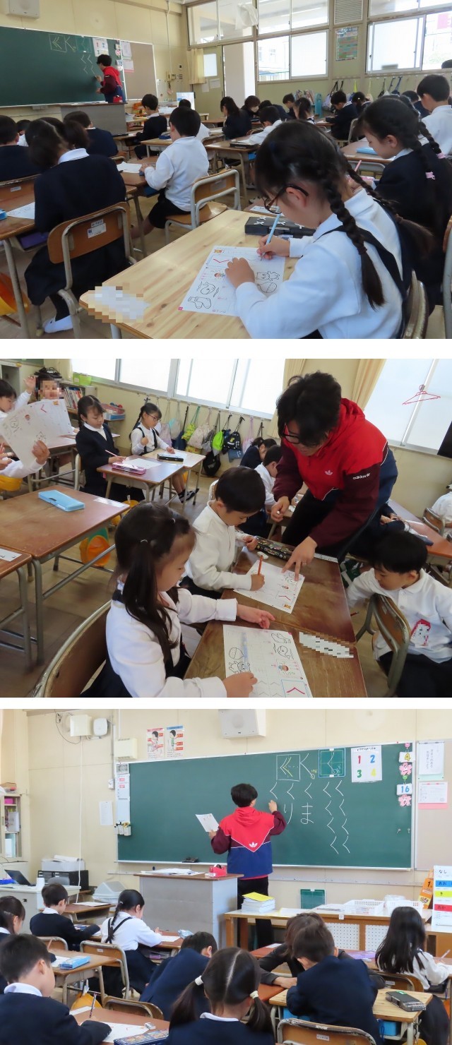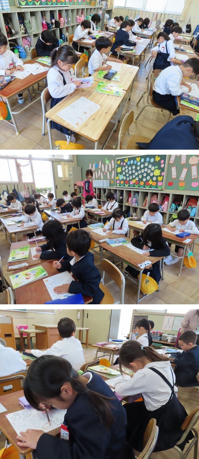 簡単そうに見えますが、プリントには4つの部屋に入るように、しっかりと「く」を書けるように練習しました。
