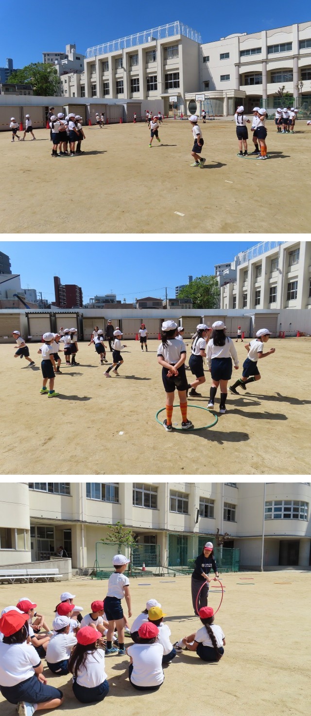 3年生が運動場で体育をしていました。