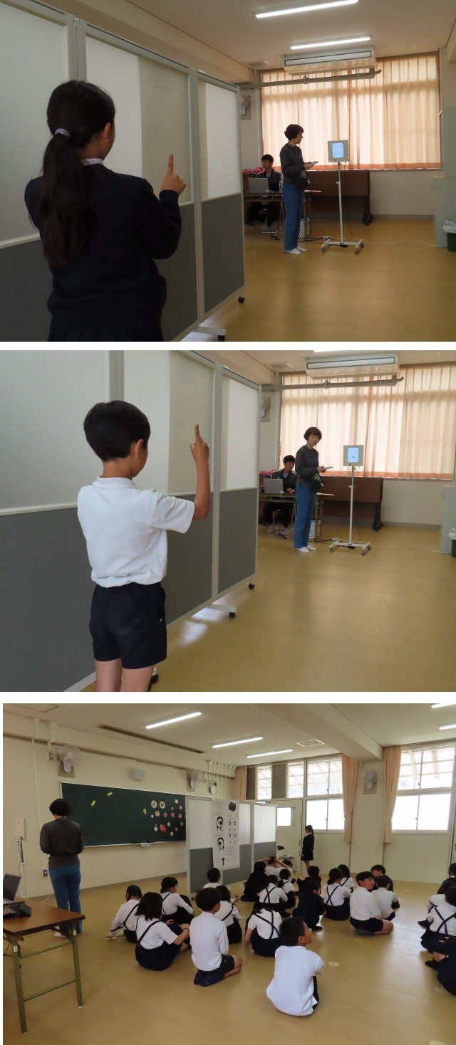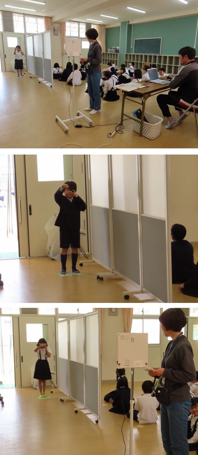 保健関係では発育測定が終わり、続いて『視力検査』を行っています。
