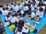 お昼ごはんは、天気のいい秋空の下、お弁当を食べました。 修学旅行最後の食事です&...