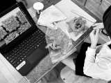 作品展に向けて準備が進んでいます。 4年生が端末で調べながら、立体作品を作成して...