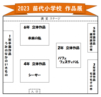11日(月)から15日(金)の学期末懇談中、作品展を講堂で行っています。保護者の...