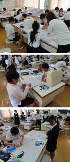 6年生が、『ナップザック』を作っていました。 袋のガラは、自分で選んだそう...