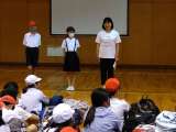退所式です。校長先生から「感謝の気持ちを忘れずに、元気に帰りましょう。」というお...