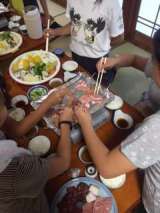 待ってました! 夕食です。みんなでコンロを囲んで、焼き肉です。 「それ、今焼いた...