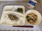 【今日の給食】 ・鶏肉と一口がんもの煮もの ・オクラの梅風味 ・ツナっ葉いため...