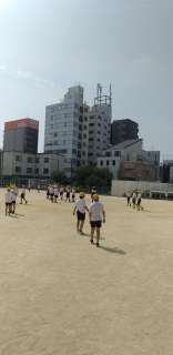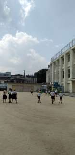 子どもたちは、暑い中元気に登校して来てます。あびこ筋の歩道橋(学校側)にガードレ...