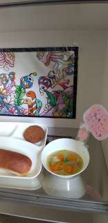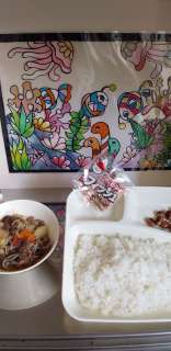 牛肉と大豆のカレーライス(米粉) きゅうりのピクルス ごはん りんごゼリー