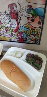 牛肉の香味焼き スープ煮 サワーキャベツ パン 牛乳