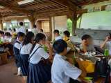 お昼のお弁当タイムです。 朝からたくさんの活動をしていたので、とてもお腹がすいて...