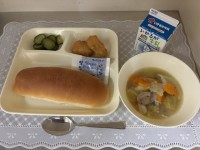 【今日の給食】・白身魚フリッター・スープ煮・きゅうりのピクルス・コッペパン・牛乳食べ物には、いろいろな栄養素が含まれています。好き嫌いをせずに、いろいろな食べ物を組み合わせることで、元気な体を作ること...
