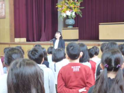最初に転入生や新しい先生の紹介、校長先生のお話、担任の先生の発表がありました。 新しい友達、先生、クラスにわくわくどきどきの始業式でした。