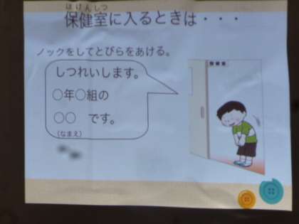 最初に保健の先生から、保健室での約束についてのお話がありました。