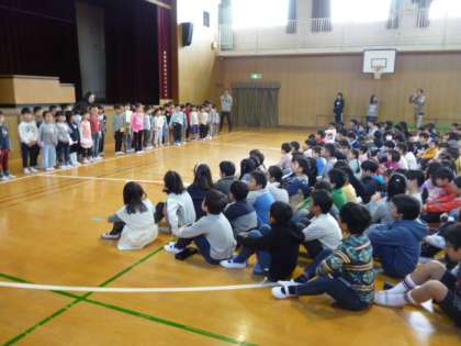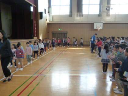 1年生から「よろしくお願いします。」のあいさつの後、2年生から6年生の列に加わりました。