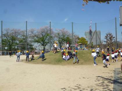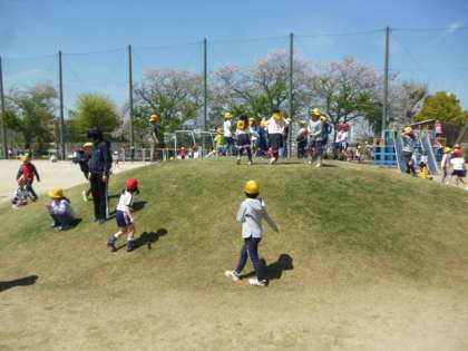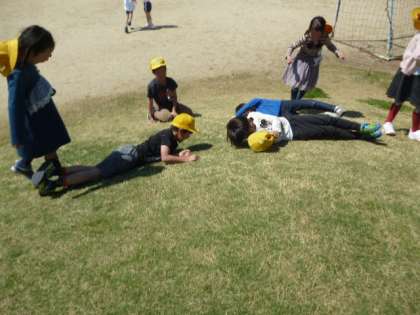 芝生が気持ちよく、転がって遊んでいる児童もいます。