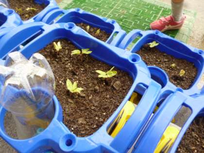 1年生に子どもたちが、毎日登校後、水やりをしています。