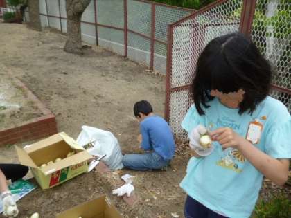 今日のさくらタイムは、玉ねぎの収穫でした。