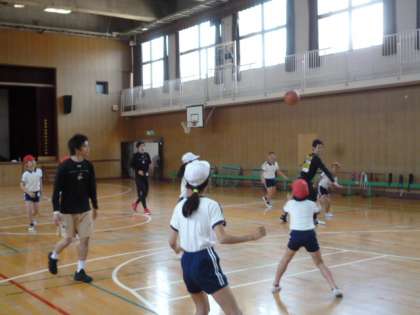 最後には、コーチ3人対6年生7人ずつで試合をしました。