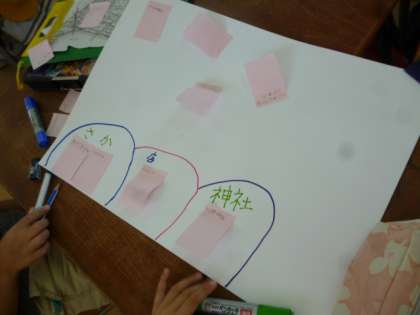 3年生が校区たんけんで調べてきたことを振り返っています。